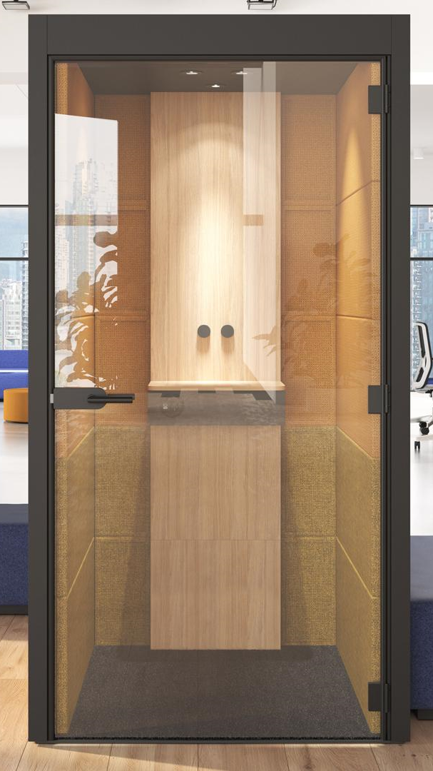 Die Narbutas-Akustikkabine ist eine Begleitkabine für bis zu zwei Personen. In dieser Schallschutzkabine wird Qualität mit einem einzigartigen Design kombiniert, auf das Sie viel Einfluss haben. Es gibt eine große Auswahl an Stofffarben und der stille Arbeitsplatz kann mit einer passenden Innenausstattung und technischen Anwendungen erweitert werden.