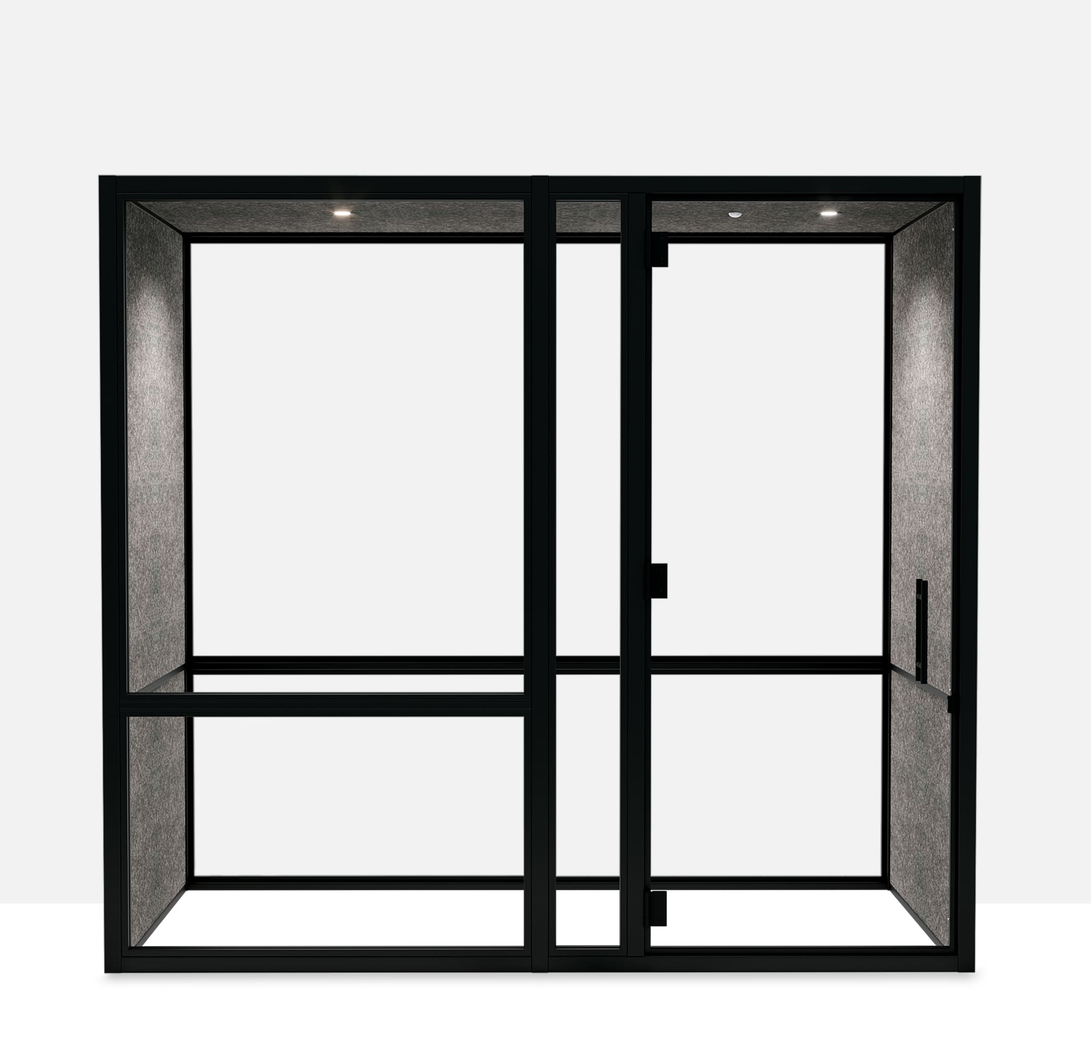 Der BOW Two ist eine größere Version der BOW One Telefonzelle. Die BOW-Telefonzellen sind so konzipiert, dass man sie jederzeit zu einer größeren Version erweitern kann. Das schlichte, einfache Design macht diesen akustischen Besprechungsraum zu einer Telefonzelle, die Sie nach Belieben erweitern können.
