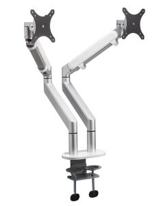 Je kunt hierbij kiezen uit een gewone monitorarm en een gasmonitorarm. De eerste stel je eenmalig in, terwijl je een gasmonitorarm gemakkelijk kunt verstellen door middel van een gasveer. Dit is handig wanneer er meerdere mensen aan één bureau werken. Maar het kan toch ook praktisch zijn wanneer jij de enige bent die achter je bureau zit.