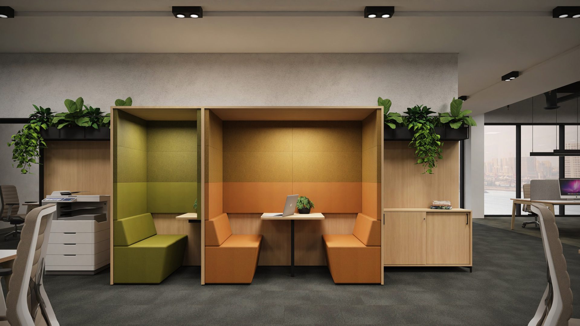 Eine schöne, offene, Quiet Box, die Sie an der Umgebung teilhaben lässt, Ihnen aber trotzdem zum konzentrierten Arbeiten ausreichend Ruhe verschafft.